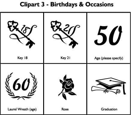 This page contains a collection of motifs which you can add to your Glass or Crystal item if Clipart is specified in the product description.